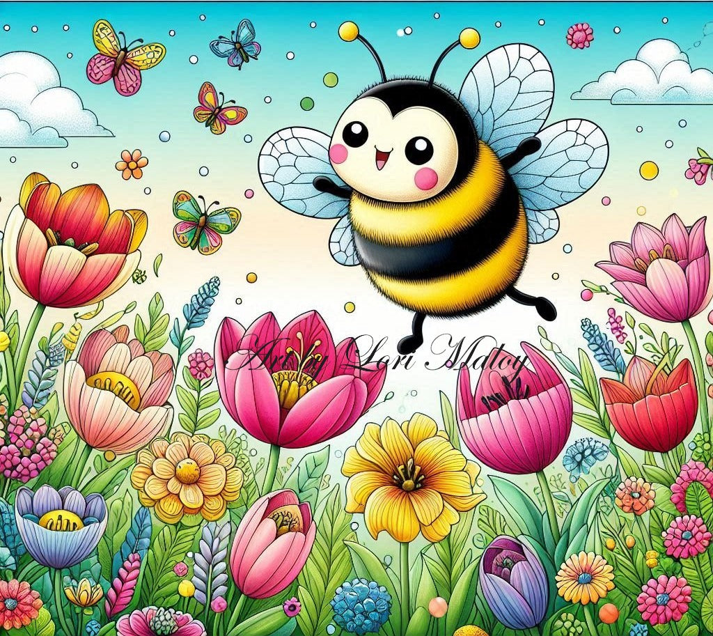 In this charming scene, a whimsical bee glides over rows of blooming tulips, as if carrying a pocketful of sunshine wherever it goes. The pattern is filled with soft pastels and joyful detail, giving your craft space an instant breath of spring. A lovely choice for anyone wanting a lighthearted, feel-good project