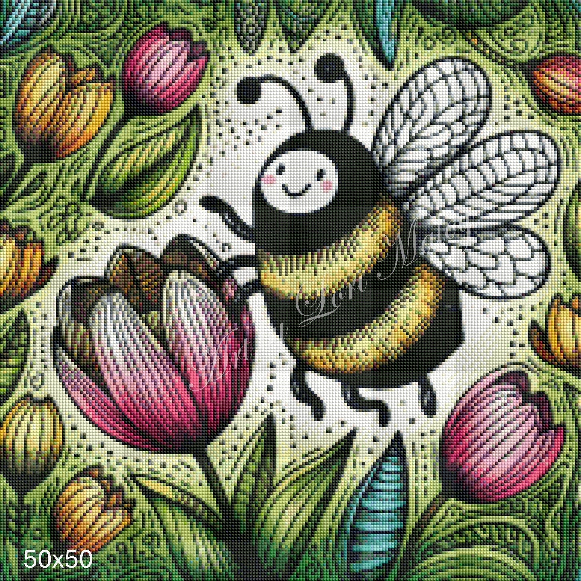 In this charming scene, a whimsical bee glides over rows of blooming tulips, as if carrying a pocketful of sunshine wherever it goes. The pattern is filled with soft pastels and joyful detail, giving your craft space an instant breath of spring. A lovely choice for anyone wanting a lighthearted, feel-good project