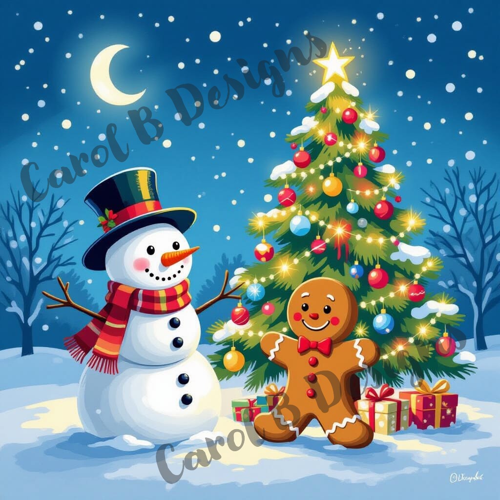 Mr Snowman with his bestie, Mr Gingerbreadman, enjoying the quietness of a clear moonlit sky the night before the chaos of Christmas festivities commence.