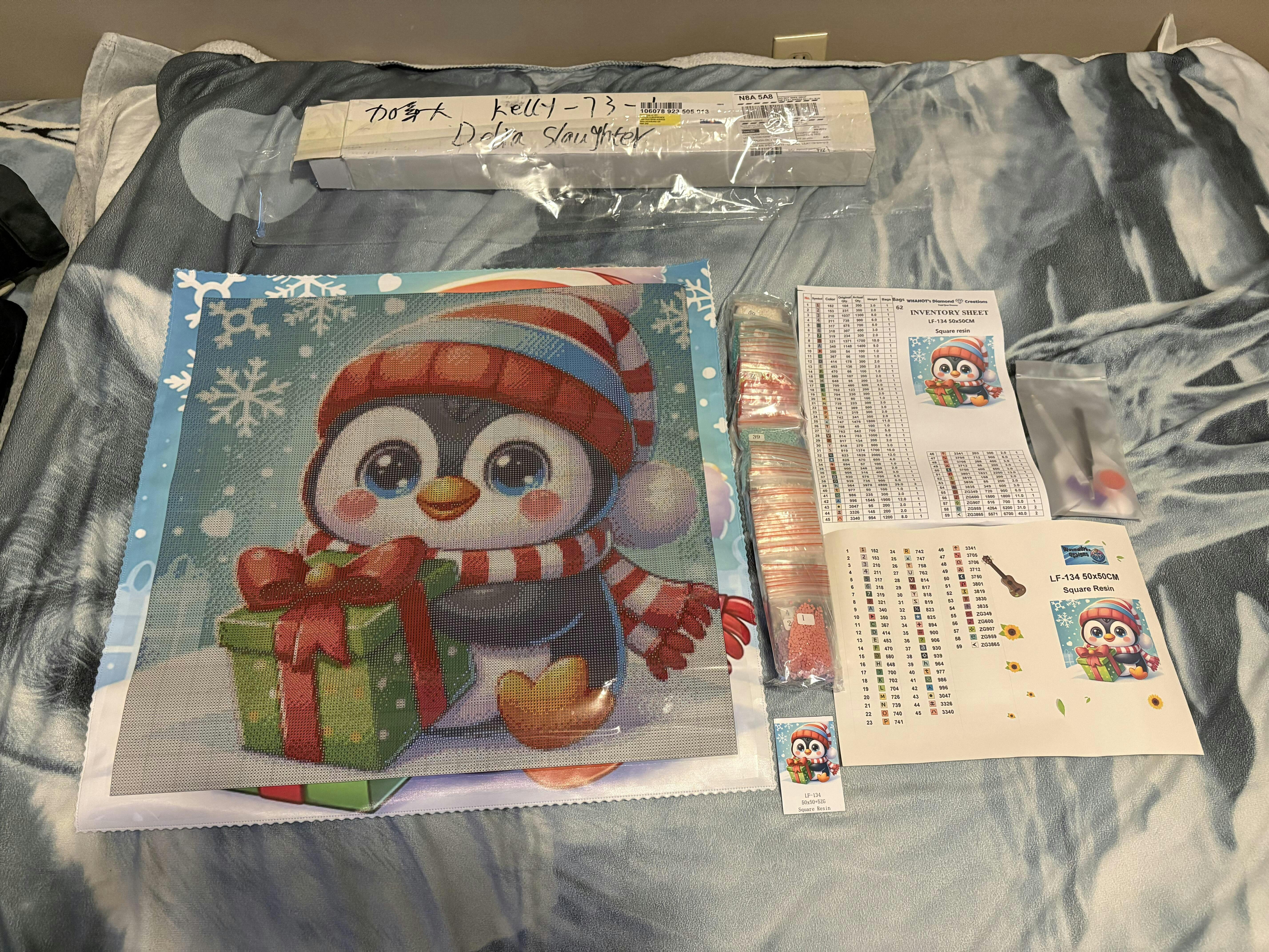 Bundle up for some frosty fun with Penguin’s Perfect Present! This adorable diamond painting kit features a cheerful little penguin all dressed for winter, holding a brightly wrapped gift that’s bursting with holiday cheer. With his rosy cheeks, sparkling eyes, and candy-striped hat, he’s ready to melt hearts even in the coldest snowstorm! Each dazzling diamond adds shimmer and charm to this festive scene, making it the perfect project to celebrate the magic of the season — or to give as a heartwarming gift itself. 💎✨