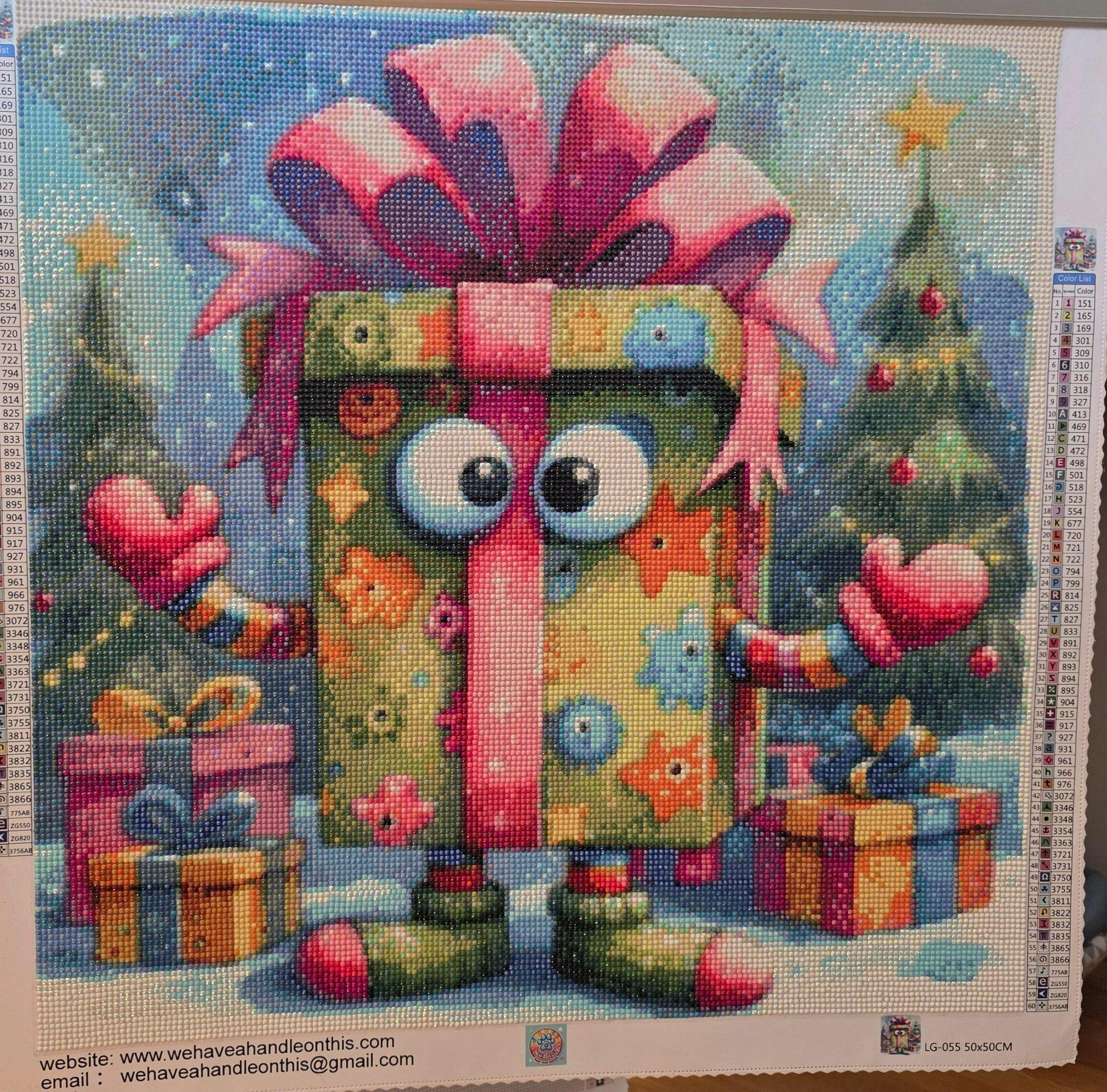 Each kit is available in 60x60 (recommended size) or 50x50 and comes with 48-60 colours, including AB and shimmery dust drills. These are all printed with the white border. If you would like the colored border, please add a note to your order. Art by Lori Maloy.